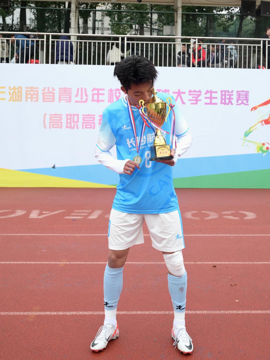 李灿龙同学自入学以来,始终保持对足球运动的热爱与执着。在校园足球训练中,他刻苦钻研技术,不断打磨传球、射门、防守等核心能力,凭借坚韧的意志与团队协作精神,成为院足球队的核心成员,多次在省级、市级校园足球赛事中帮助球队取得优异成绩,个人也多次获评“最佳球员”“最佳射手”等荣誉。