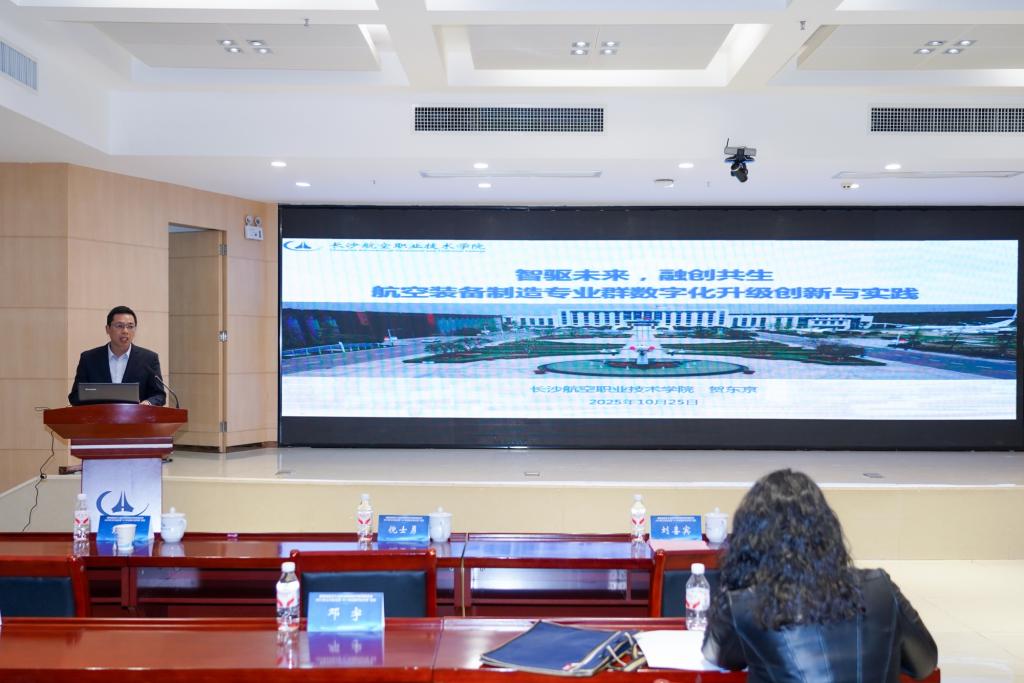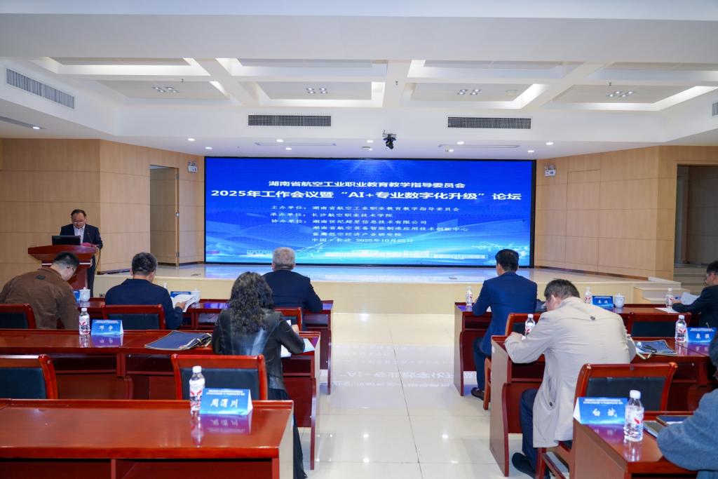 10月25日,由湖南省航空工业职业教育教学指导委员会主办、我院承办的湖南省航空工业职业教育教学指导委员会2025年工作会议暨“AI+专业数字化升级”论坛在我院协同创新中心大楼会议厅顺利召开。湖南航空工业局副局长、行指委主任李雄飞,我院院长刘喜宾等领导出席,来自行业企业、院校的30多家单位代表参会。