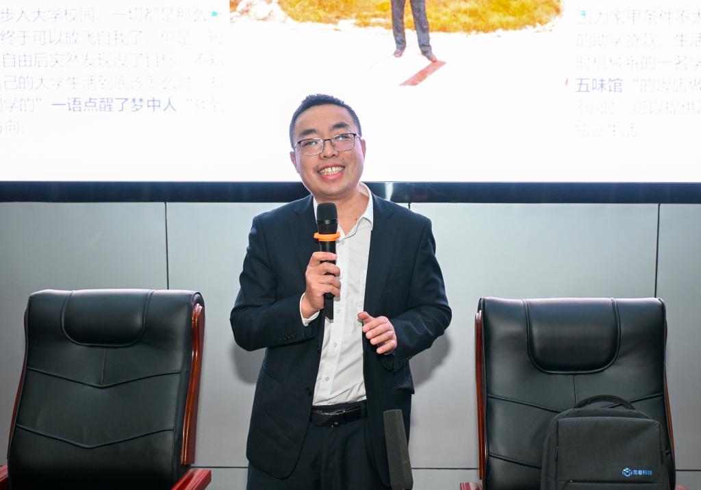机电学院党总支书记许文斌在总结发言中,对黄建康校友的深情分享表示衷心感谢,并勉励全体同学以优秀校友为榜样,努力成长为“理论扎实、技能过硬、作风优良、纪律严明”的新时代航空维修人才,让“航空匠心”在校园中生根发芽,在未来岗位上绽放光芒。
