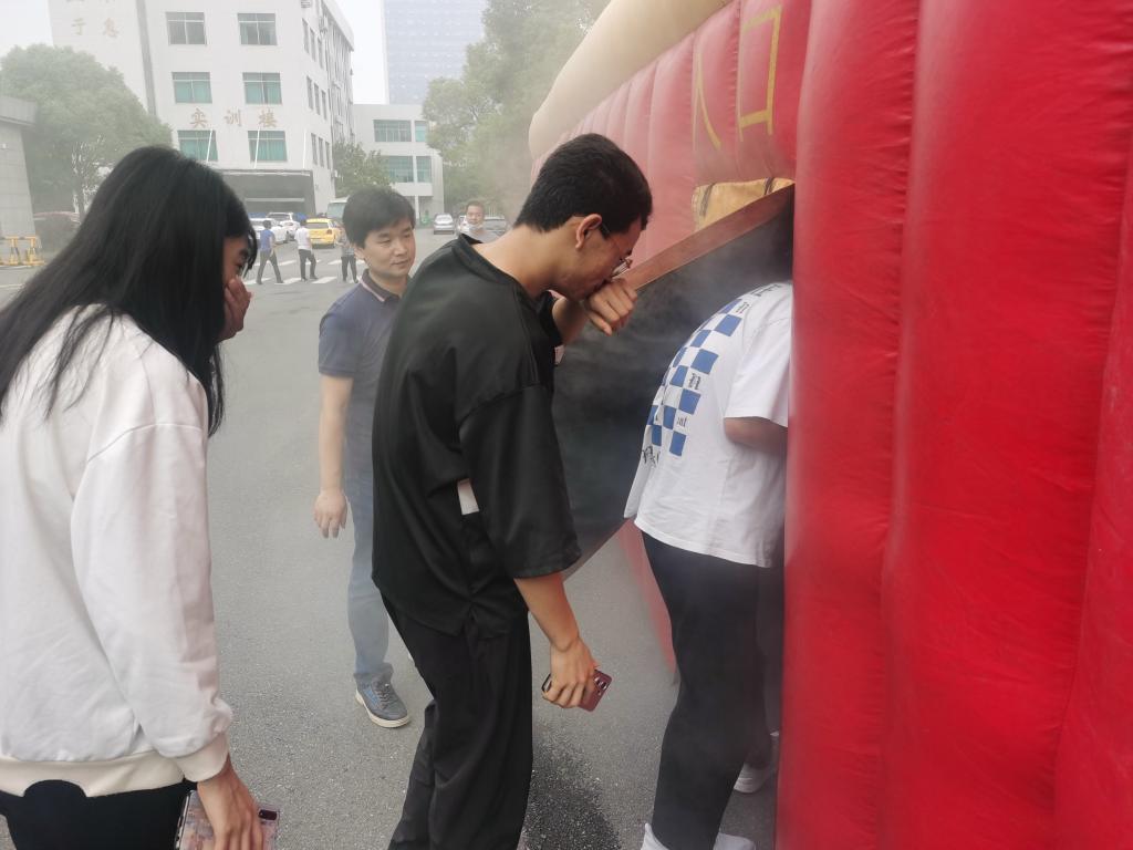 活动开始前,同学们首先认真聆听了长沙市普消消防宣传中心教官进行的消防知识讲解和参加应急演练的注意事项和纪律要求。随后,在专业工作人员的指引下,大家按照学到的消防应急疏散正确方法,捂住口鼻,依次进入搭建好的火场烟雾逃生演练屋,体验真实火场的情况。在狭小黑暗、烟雾弥漫的环境中,大家沉住气,不慌张,相互帮助,最后找到正确的出口,成功“逃生”。由于整个消防演练过程组织周密,定位准确、有条不紊,全体同学均在规定的时间内完成撤离任务,达到了预期的效果。“当进入一片漆黑、满是浓烟的火灾烟雾逃生体验屋,被困在火场时那种举目无助、孤立无援的场景真是很可怕,我们平时一定要做好火灾预防!”参加完火灾烟雾逃生体验后,一学生心有余悸地说。