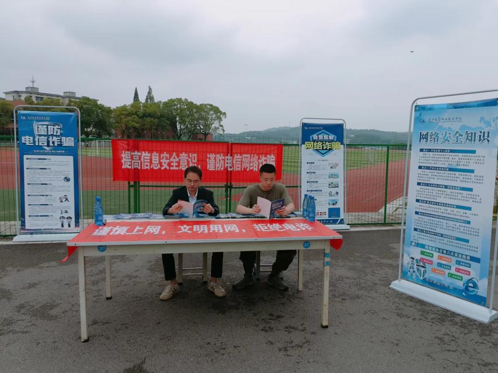 5月26日下午,我院网络安全警示教育学生签名活动,在跳马校区主马路第一教学楼前坪举行,一千余名师生现场领取警示教育资料,并在“谨慎上网、文明用网、拒绝电诈”横幅上签名。