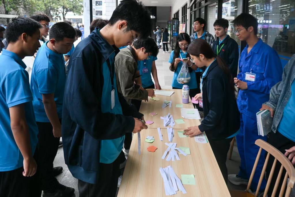 卡牌墙”前长龙不断,100道题目按“基础—进阶—挑战”三级难度排布,覆盖飞行器维修技术、航空发动机维修技术、通用航空器维修、理化测试与质检技术、无人机应用技术等五大专业核心知识点。随机抽卡、即刻开答的节奏把现场氛围直接拉满,顺丰订单23级郑同学用10秒拿下挑战题,“把伯努利方程理解为流动中的能量守恒方程,一秒记住!”检测2401周瓒和队友在“进阶题”区卡壳,现场秒变“临时学习小组”,你一言我一语讨论后合力破解,两人兴奋击掌。欢笑声、掌声此起彼伏,同学们纷纷感慨:“边玩边学”既缓解学习压力,又巩固专业知识,形式新颖,效果显著”。