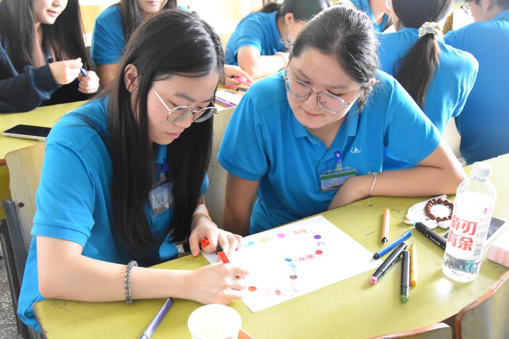 活动现场氛围活跃,团学干部们积极投入、畅所欲言。道具组及时补充画纸与彩笔等物料,保障活动顺畅进行;摄影组则全程记录精彩瞬间。随着创作推进,各组的画纸上逐渐浮现出色彩鲜明的圆形与串联词汇,形成一幅幅独具特色的“联想地图”。在最后的“作品盲猜”互动环节中,现场气氛被推向高潮——同学们随机抽取他人作品进行解读与分享,纷纷表示这一游戏虽形式简单,却有效锻炼了思维转换能力,不仅缓解了学业与工作的压力,更在短时间的感知与思考中激活了潜意识。