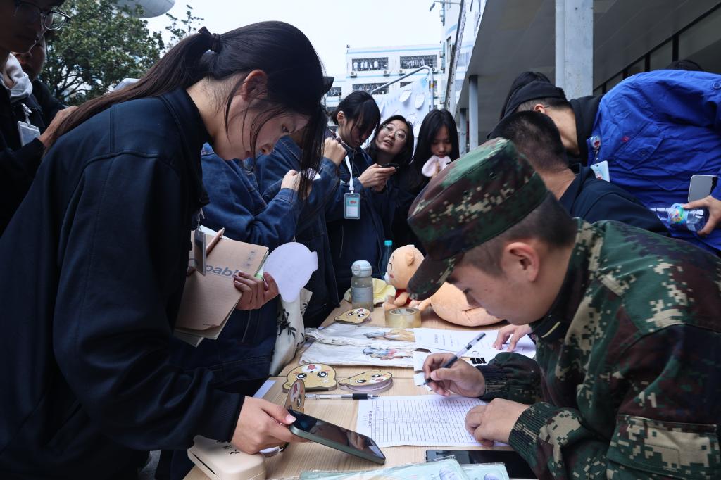 金秋送爽,长空砺剑;青春向党,共卫家国。在11月11日空军节来临之际,我院易班发展中心以“众志易聚翼,共卫护长空”为主题,在跳马校区二食堂门口开展线下主题活动,全校学子踊跃参与,在沉浸式体验中传承空军精神,厚植国防情怀。