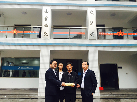 据悉,16级新生陈栋,于9月17日晚突发39℃高烧,被送往长沙市中心医院并确诊为“病毒性脑膜炎”,其后一直在重症监护室进行治疗,至10月2日转入长沙市第二人民医院。截至目前,医疗费用已经花去七万余元。务农是陈栋同学家庭的主要经济来源,除了抚养陈栋以外,还要供陈栋同学哥哥读书和生活,陈栋突如其来的疾病,这对于并不富裕的农村家庭来说可谓是雪上加霜。一人向隅,举桌不欢;一人有难,举院施援。为了帮助他战胜病魔,早日回到校园学习,在士官学院党总支的积极倡导和发动下,全院师生纷纷伸出援助之手,奉献爱心。共筹集爱心捐款12906元,胡德军院长、司马吉凯书记于10月27日,亲自将爱心款送到了陈栋同学家长手中。