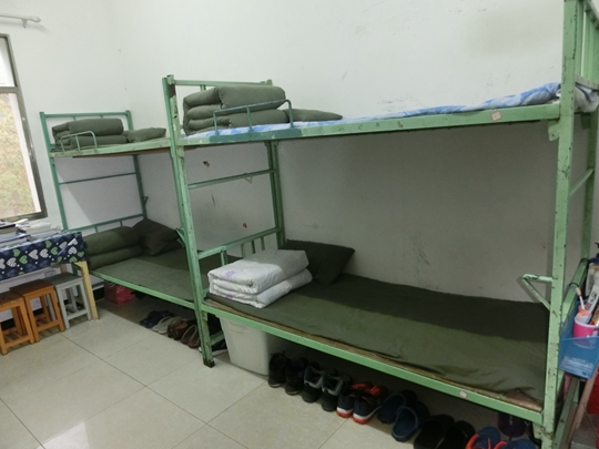 9栋宿舍楼61间寝室,共计366人,全部由机制学院统一管理。去年,该院在9栋宿舍以“6s”管理为标准开展了宿舍大整顿。以“弘扬军事化管理理念,争创优秀内务寝室”为口号,做好“整顿、整洁、清扫、清洁、安全、素养”工作。此次活动开展近一年以来得到了同学们的积极响应,学生宿舍由原来的脏乱差到现在的内外卫生环境干净、整洁,同学们的自觉性明显提升,生活井然有序,学生管理工作安定平稳。当日,检查小组深入9栋多个寝室进行突击检查,大部分寝室能达到卫生整洁,床铺整齐,地砖干净瓦亮,行李箱摆放整齐划一,活动效果可见一斑。